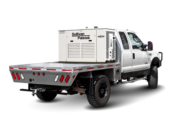 The compressors in the 110-260 CFM range come with a convenient Sullivan-Palatek Electronic Controller (SPEC) located on the curbside. This controller offers a digital display for various readings such as compressor, coolant, and engine temperatures, fuel level, engine hours, engine oil pressure, RPM’s, and more. These compressors have a compact design and easy accessibility, making them highly sought-after utility mounts in the industry.