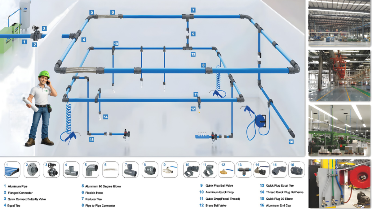Built with durability and flexibility in mind, modern piping infrastructure helps reduce pressure loss, improve airflow consistency, and optimize overall system performance. The modular configuration allows for simplified installation, reduced downtime, and seamless system expansion as operational demands evolve.